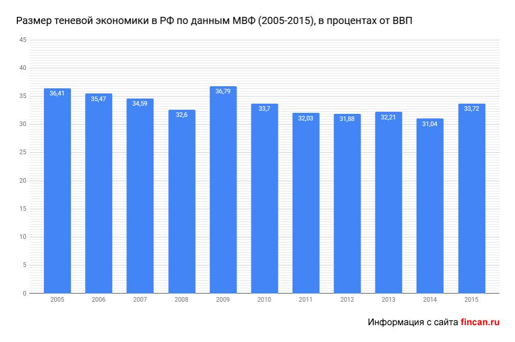 Таблица. Размер теневой экономики в РФ по данным МВФ (2005-2015)