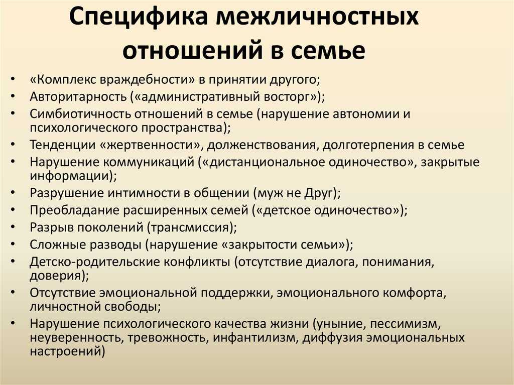 Виды межличностных отношений в семье