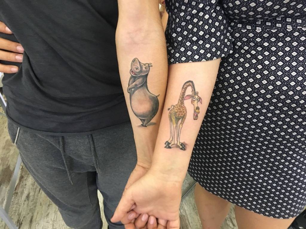Как черное и белое, плюс и минус, парные тату соединяются в единое целое, представляя собой полноценную композицию. Для этого достаточно совместить рисунки друг с другом. Каждая самостоятельная половинка выглядит немного ущербно без партнера.
