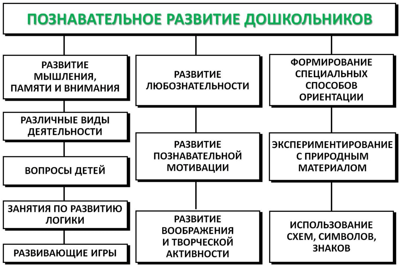 Методики познавательного развития в дошкольных образовательных учреждениях позволяют совершенствовать такие важные для ребенка сферы, как любознательность, мышление, воображение, память, логика, речь. Чтобы малыши не утомлялись, интеллектуальные занятия сочетаются с творческими (рисование, лепка, танцы, аппликация, пение), двигательными (подвижные игры, физкультурные занятия).
