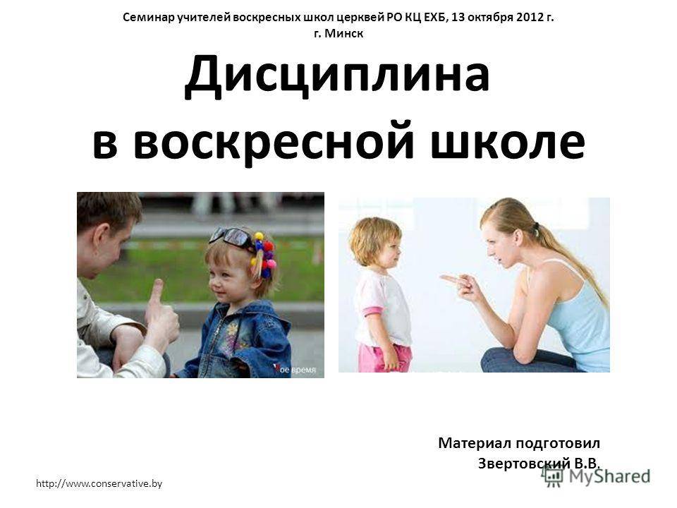 Дисциплина в воскресной школе Материал подготовил Звертовский В.В. Семинар учителей воскресных школ церквей РО КЦ ЕХБ, 13 октября 2012 г. г. Минск