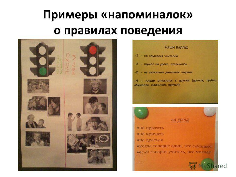 Этапы реализации: Установка начальных правил Напоминание Увещевание Наказание Поощрение не обязательно словесно – это могут быть плакаты и др. наглядные пособия, которые всегда на виду