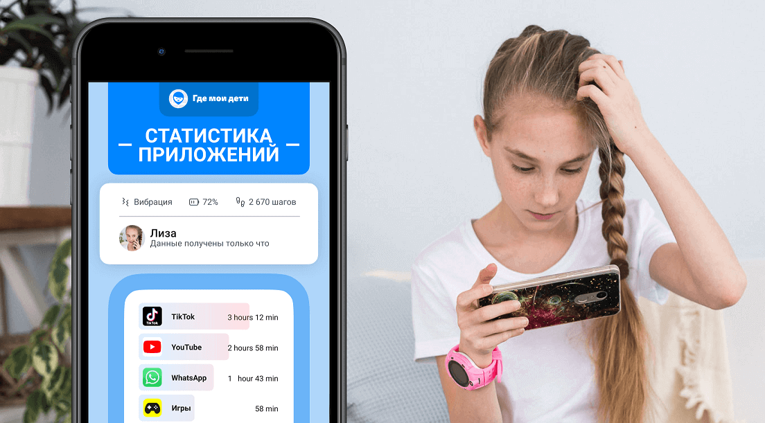 С этой задачей справляется мобильное приложение «Где мои дети». Программа позволяет контролировать использование смартфона ребёнком.Вы узнаете: – не сидит ли ребёнок в YouTube во время отдыха; – не играет ли на телефоне вместо занятий и – какой возрастной рейтинг у игр, в которые он играет.