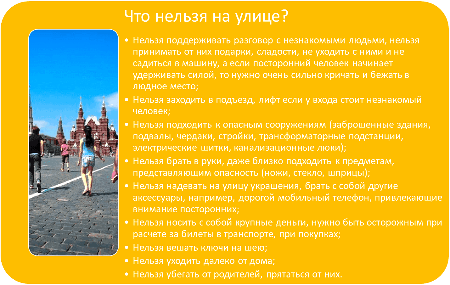 Перечень правил поведения детей за пределами дома