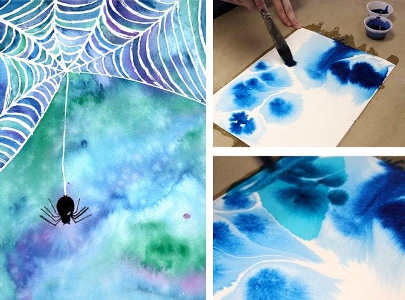 Паутинка на правой картинке нарисована с использованием восковой свечи. Об этом читайте чуть ниже.