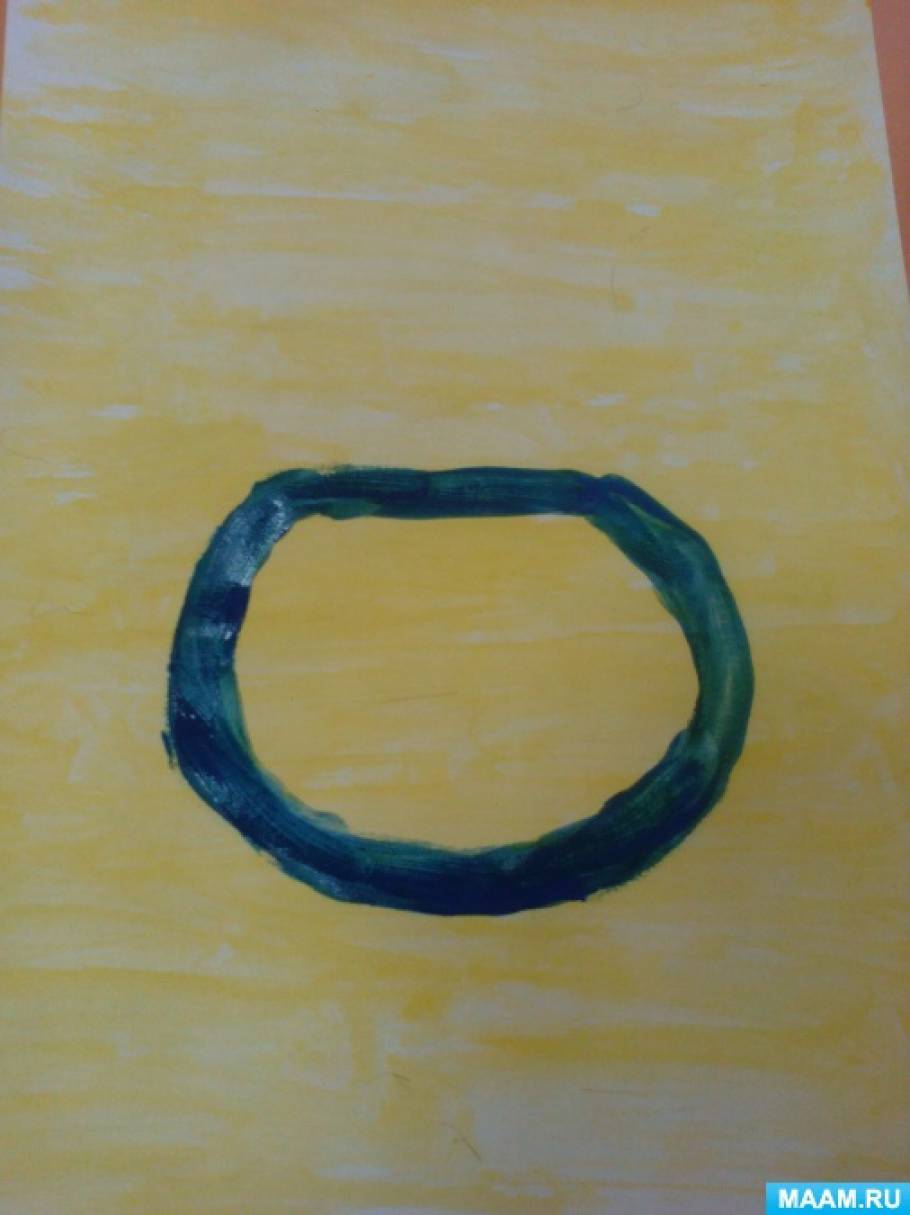 - Дети учатся наносить крупные элементы, располагая детали в соответствии с размером листа. Это даёт начальные понятия о композиции.