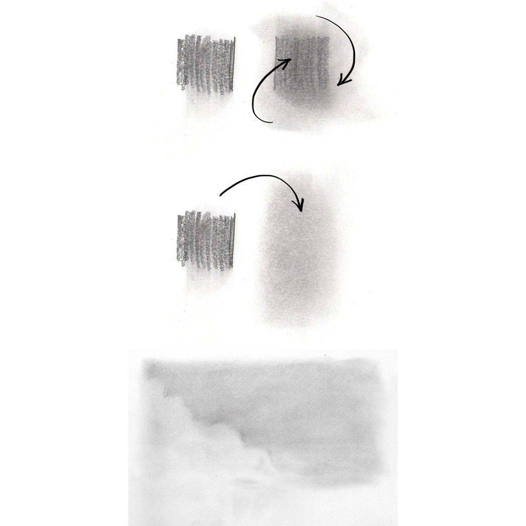 Чтобы создать нежный переход, разотрите мягкий графит или уголь бумажной растиркой