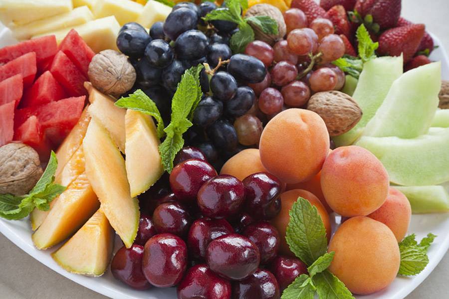 Составлять закуски можно из фруктов. Их подбирают в зависимости от места производства напитка. К коньяку подают груши, персики, виноград и клубнику. Фрукты и ягоды можно совместить с грецкими орехами или сыром в канапе — получится пикантная закуска. От ананасов, манго и других экзотических плодов желательно отказаться.