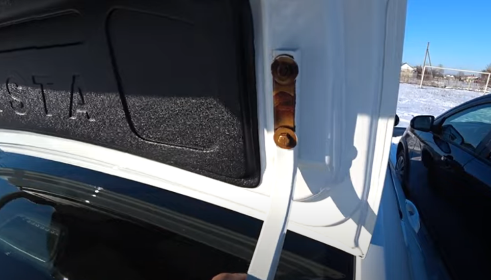 Крупные петли выглядят не очень красиво, да еще и забирают часть пространства багажника в закрытом положении.