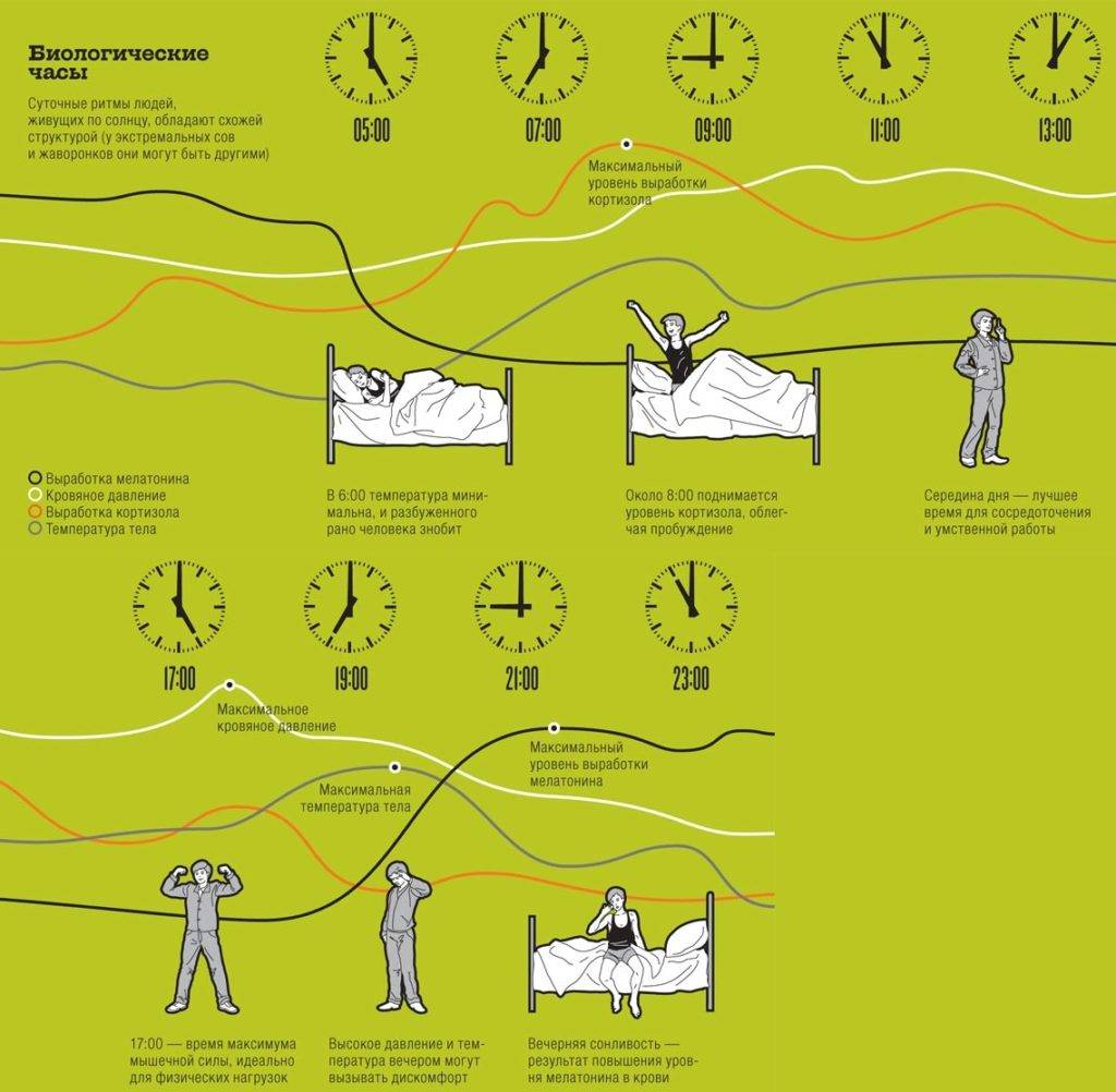 При этом важно слушать свой организм, составляя собственный график работы и придерживаясь правильного рациона питания. Ведь сама природа, создавшая разные хронотипы, напоминает нам о том, что каждый человек — индивидуален
