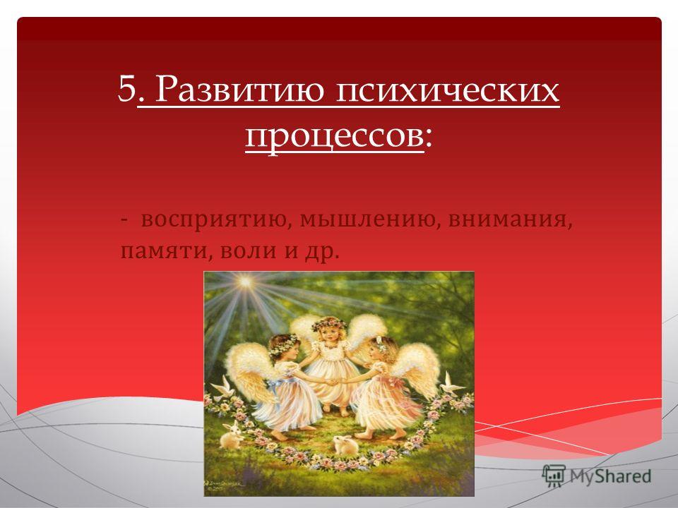5. Развитию психических процессов: – восприятию, мышлению, внимания, памяти, воли и др.