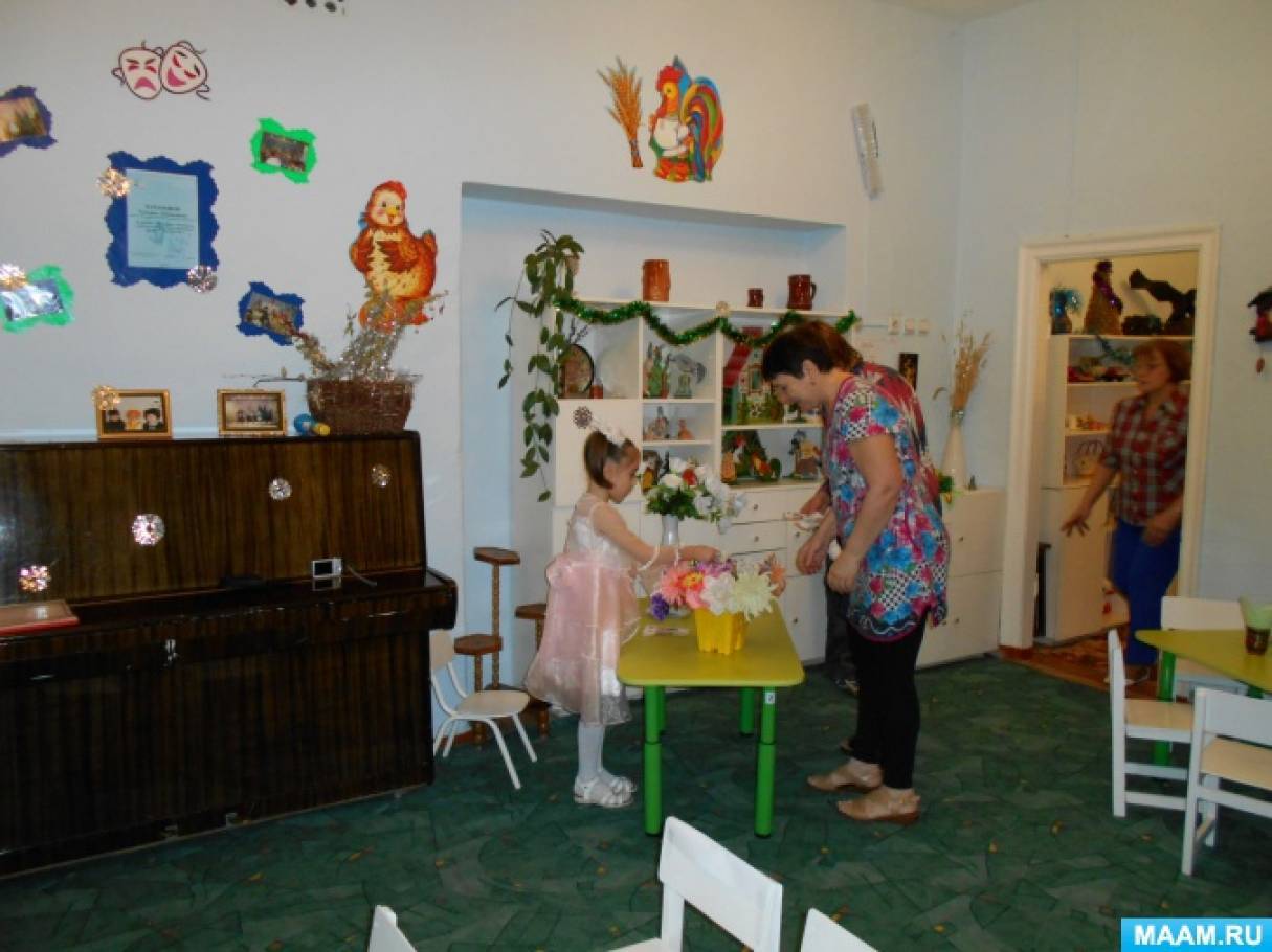 - формирования коммуникативных навыков в процессе игры (маленькие артисты учатся слушать и слышать не только речь своих персонажей, но и друг друга в процессе переодеваний, выбора костюмов или атрибутов роли);