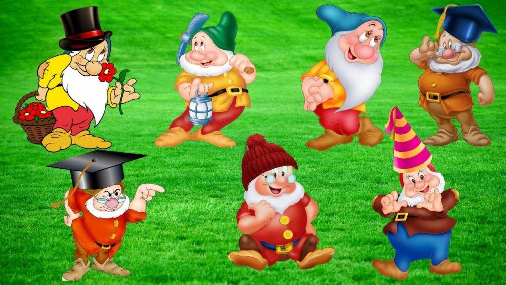 - Семь гномов или семь богатырей (в зависимости от того, на какой сказке воспитываете малыша). Можно взять картинку из книжки или разукраску и подписать день недели каждому гному или богатырю.