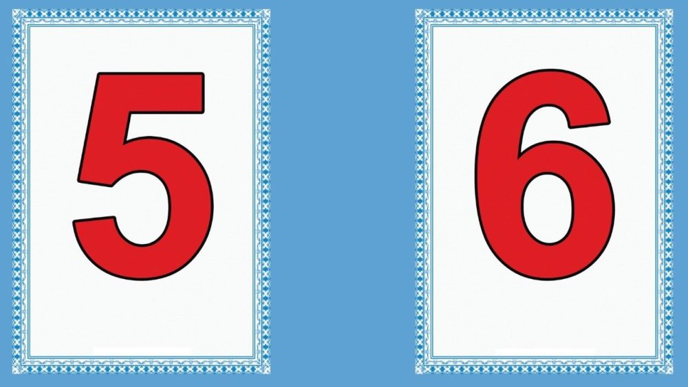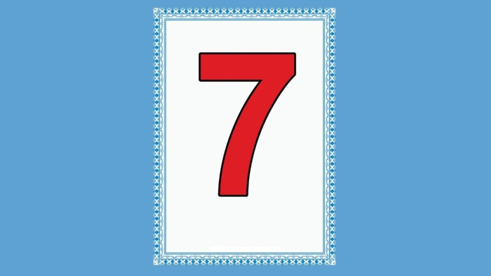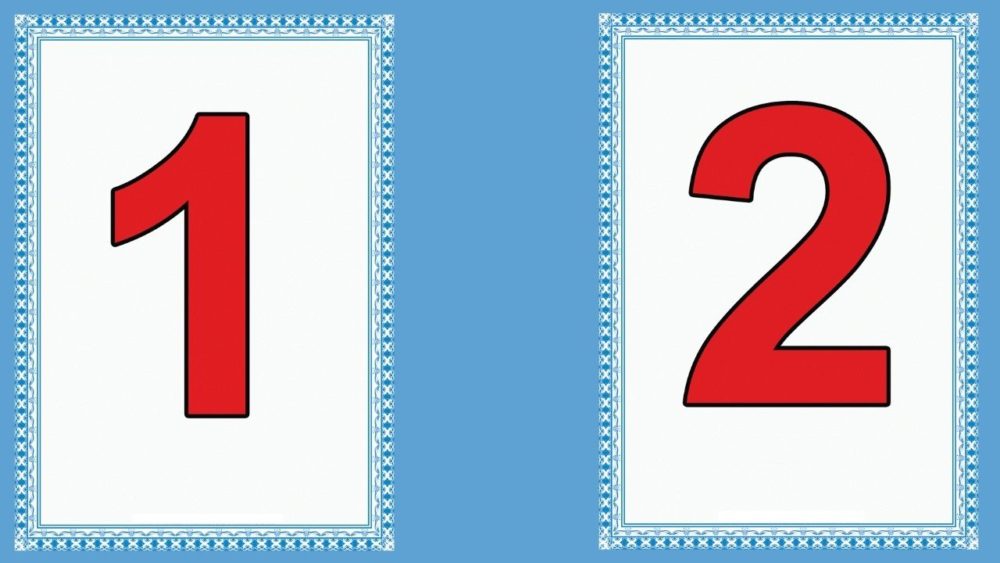 Воспитатель вызывает к доске 7 детей и предлагает им взять со стола по одной карточке с цифрами от 1 до 7.