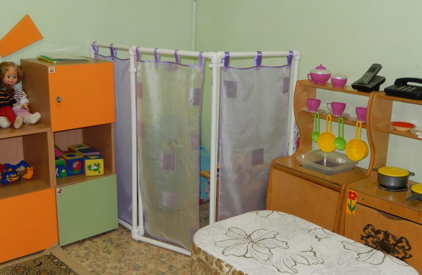 Если в группе не очень много места, то для создания зоны уединения можно использовать ширму. Это удобно, поскольку такой уголок получится мобильным: его можно переносить с места на место по желанию детей и воспитателя.