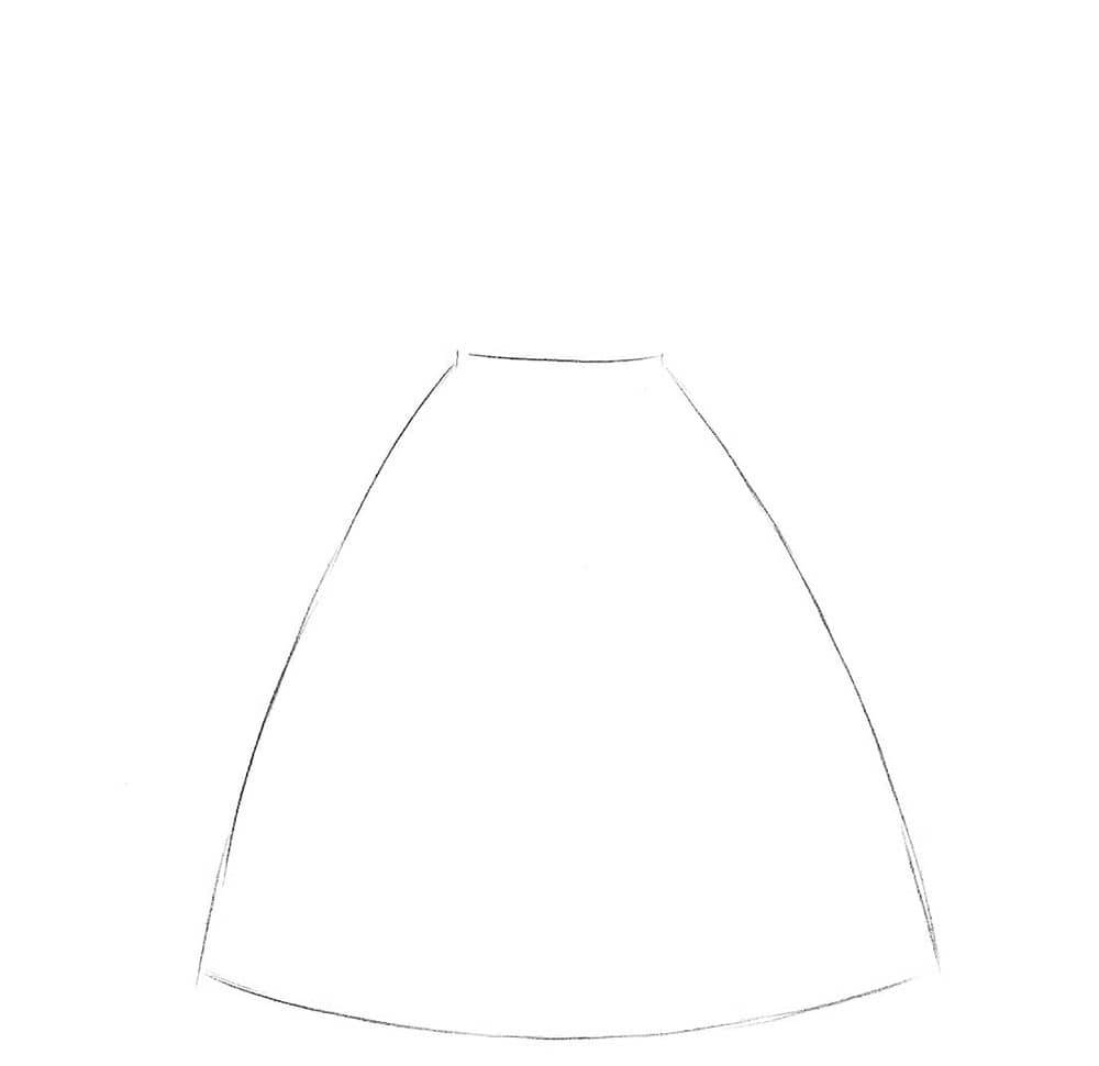 Итак, чтобы правильно нарисовать платье, возьмите карандаш и, используя очень легкие, слегка видимые линии, нарисуйте такую трапециевидную геометрическую фигуру.