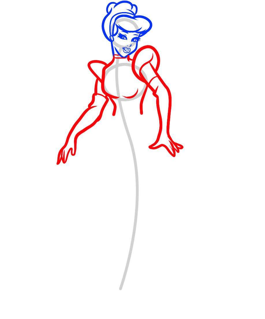 Теперь идите немного выше и обведите верх платья, которое выглядит как майка. Мы рисуем платье с короткими рукавами, но вы, конечно, можете нарисовать платье с рукавами до локтей или до запястий.