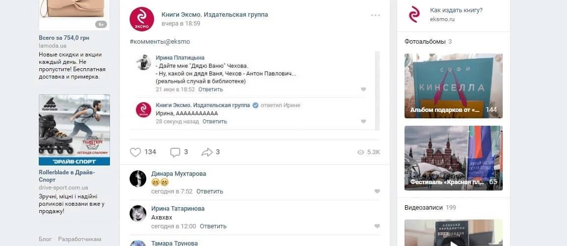 Своим постом издательство «Эксмо» показывает, что внимательно относится к комментариям подписчиков