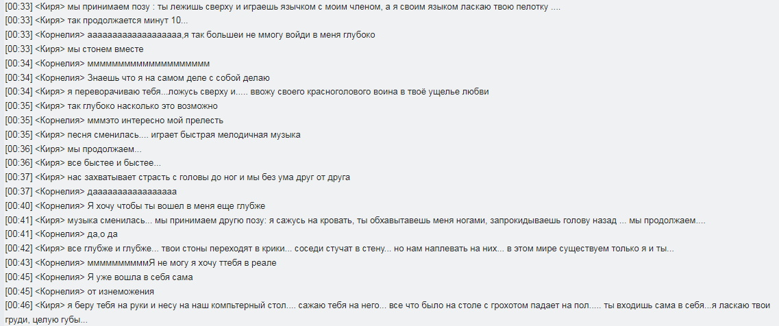 Примеры реальной интимной переписки тут: https://www.yosx.ru/f3/t629-virtual-nij-seks-istoriya-perepiski-telefon.html.